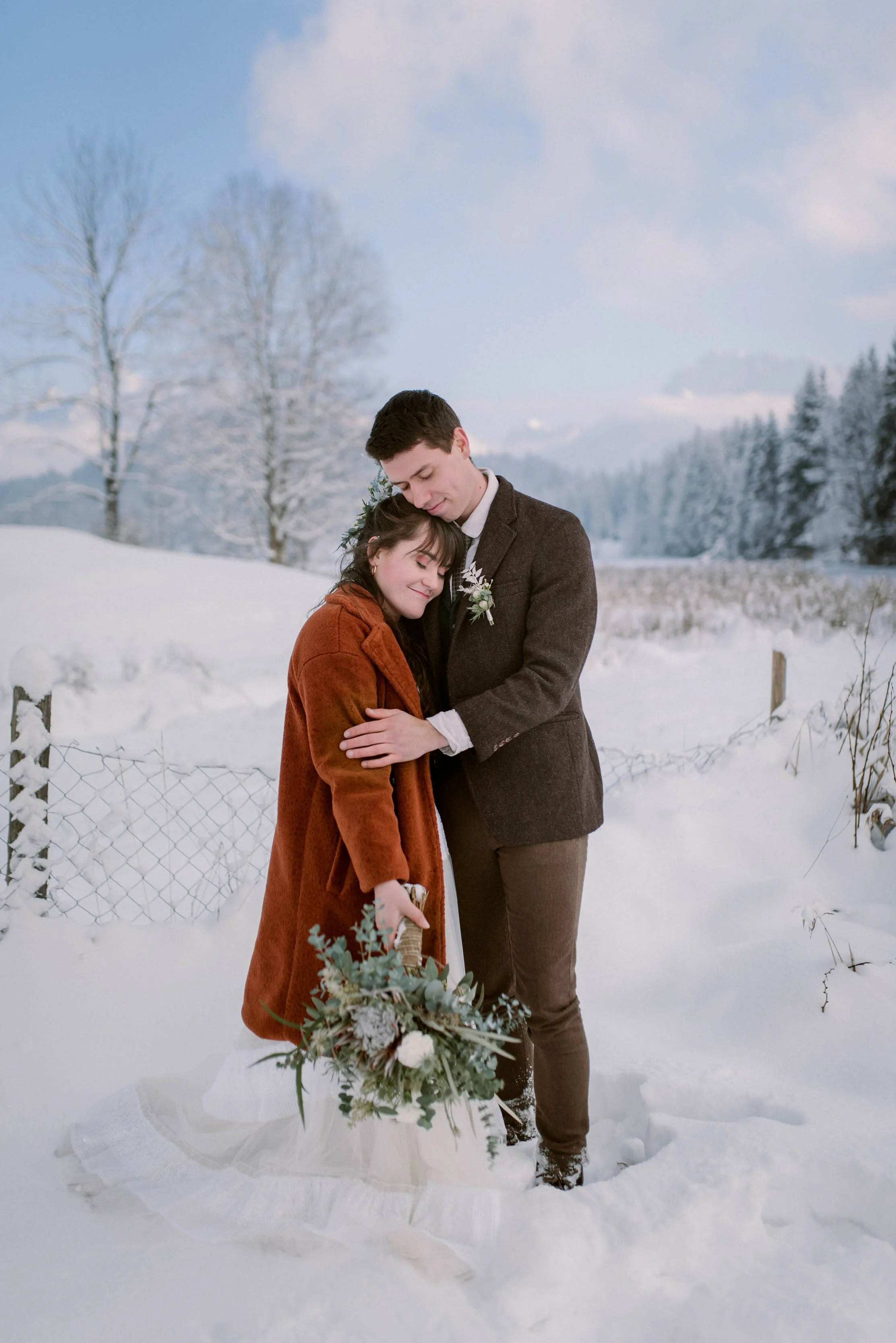 Magical Winter Elopement in the German Alps at Lake Eibsee, Garmisch. Winter wedding in pastel colours