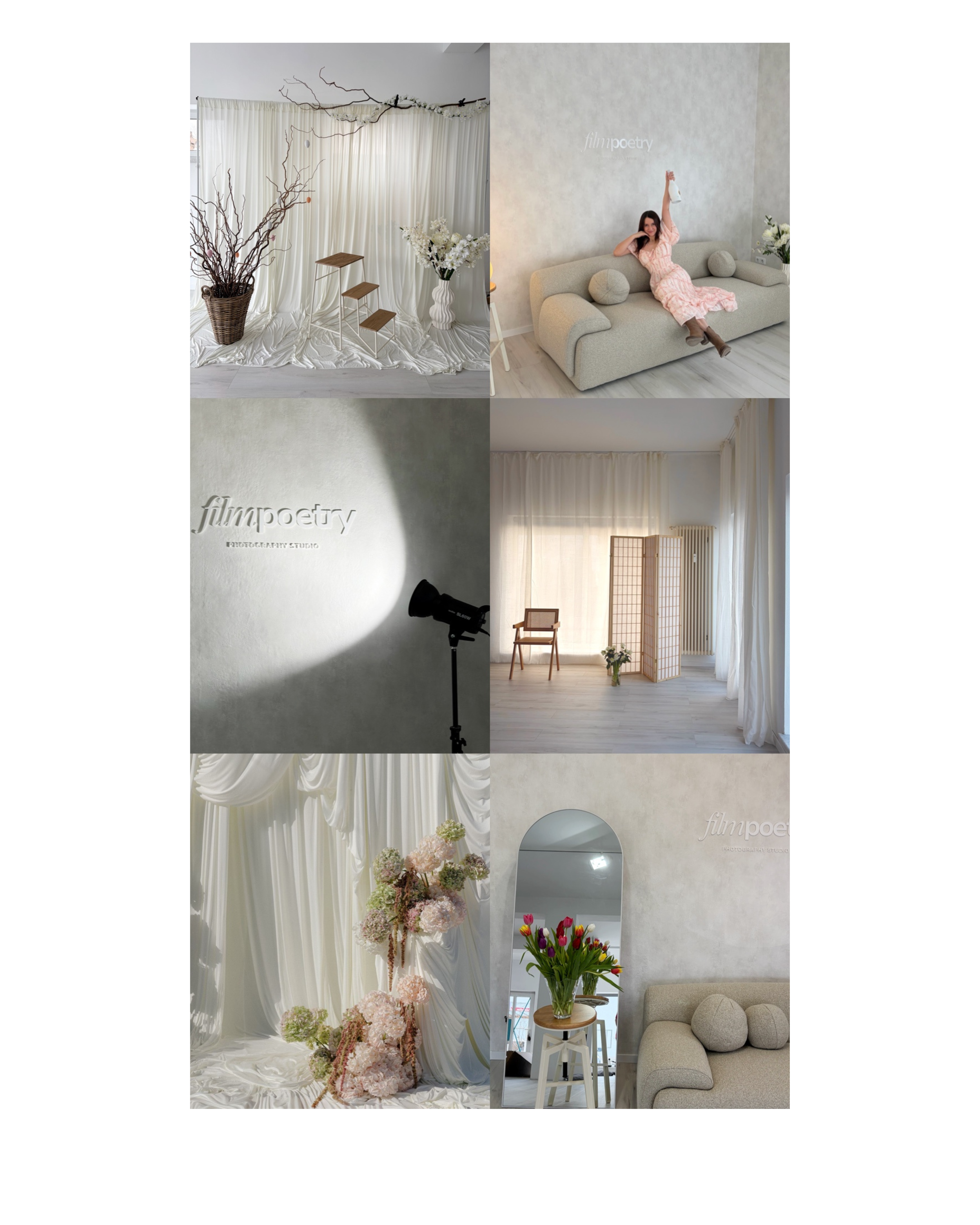 Das Studio ist bewusst minimalistisch, sauber und elegant gestaltet und verfügt über eine sorgfältig kuratierte Auswahl an Design-Möbelprops und professionellem Lichtequipment, die vielseitige kreative Setups ermöglichen – von Editorial und Portrait bis hin zu Kampagnen- und Contentproduktionen.